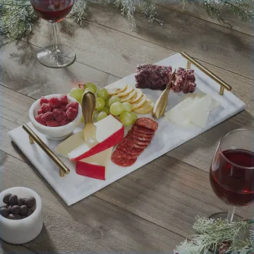 Un plateau en marbre, ça fait toujours son effet sur une table. Pratique pour présenter fromages et charcuteries, et suffisamment beau pour donner l'impression qu'on a fait des efforts.