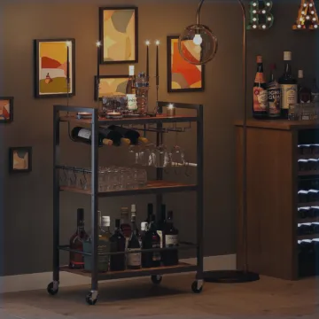 Un chariot de bar, c'est le genre de meuble qui transforme un coin du salon en vrai espace de réception — pratique et élégant à la fois.
