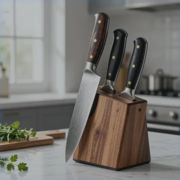 Un ensemble de couteaux avec bloc, c'est le cadeau idéal pour le copain qui aime cuisiner et impressionner en cuisine — pratique, élégant et qu'il utilisera chaque jour.